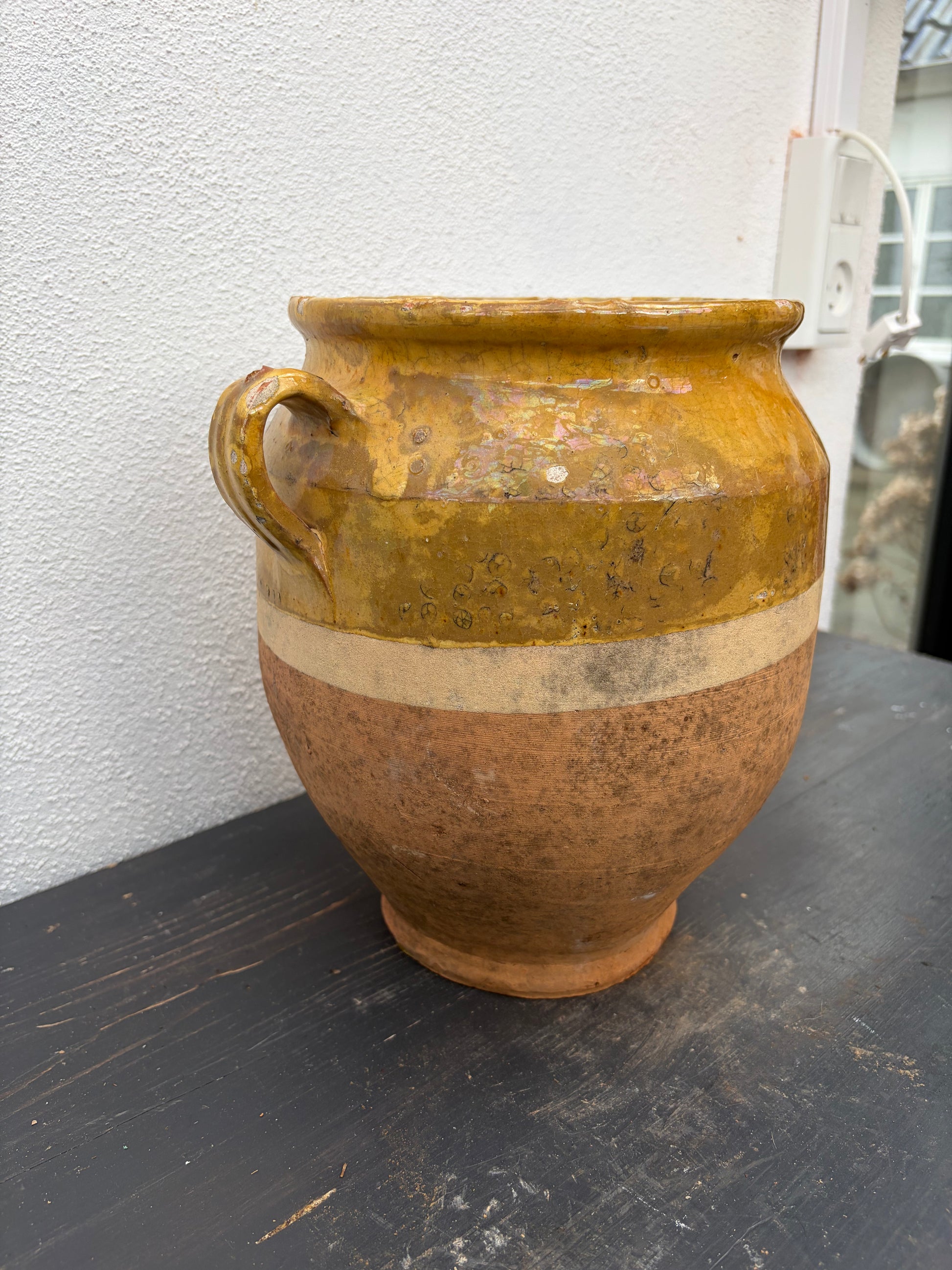 Flot confitkrukke med gul glasur.