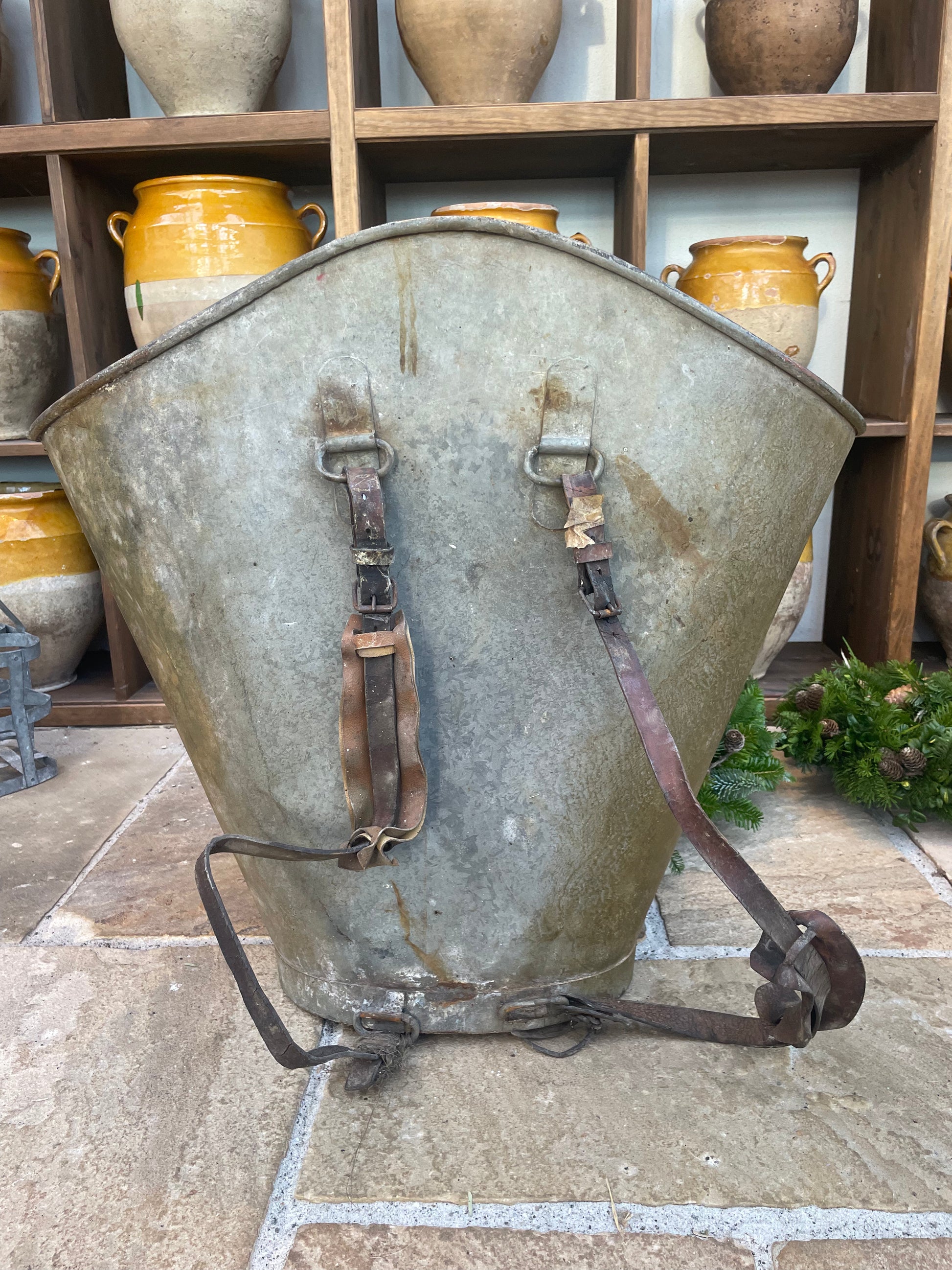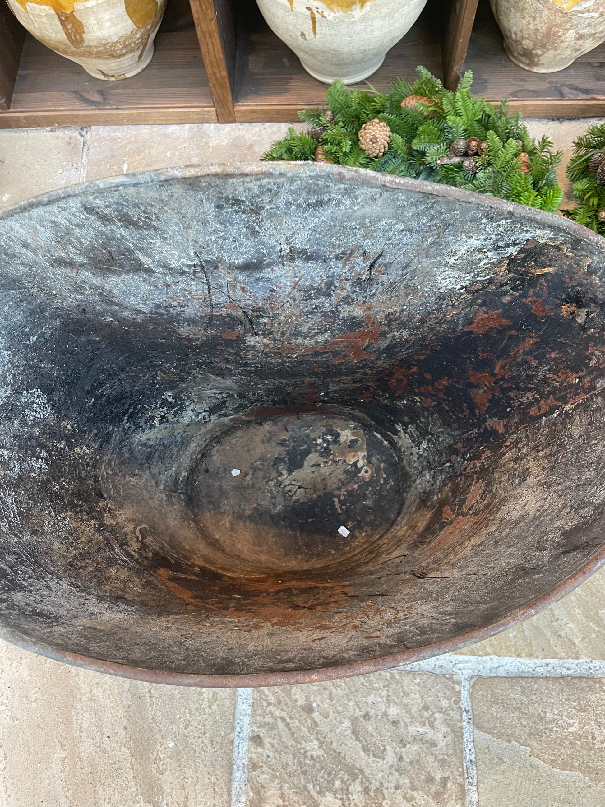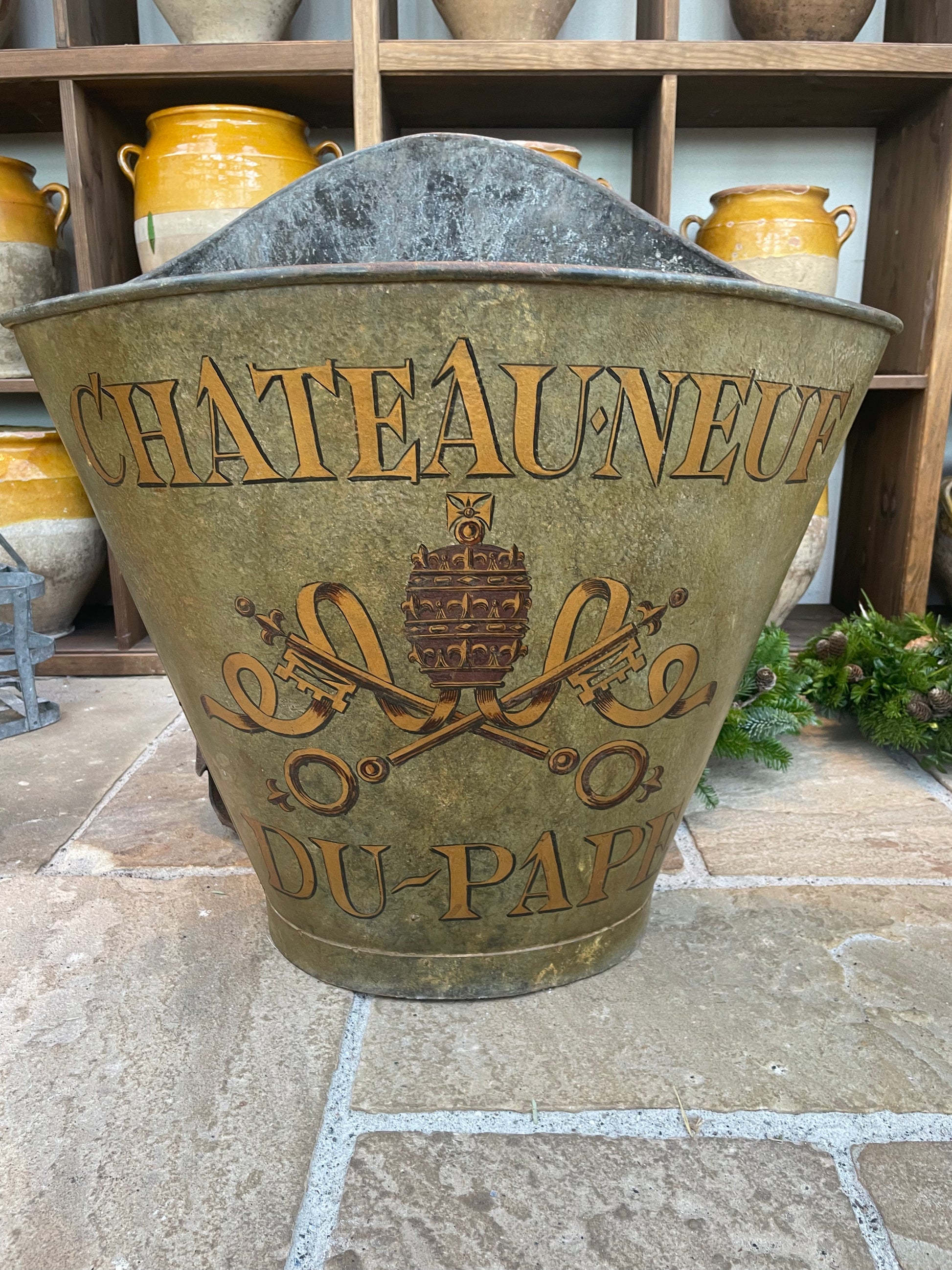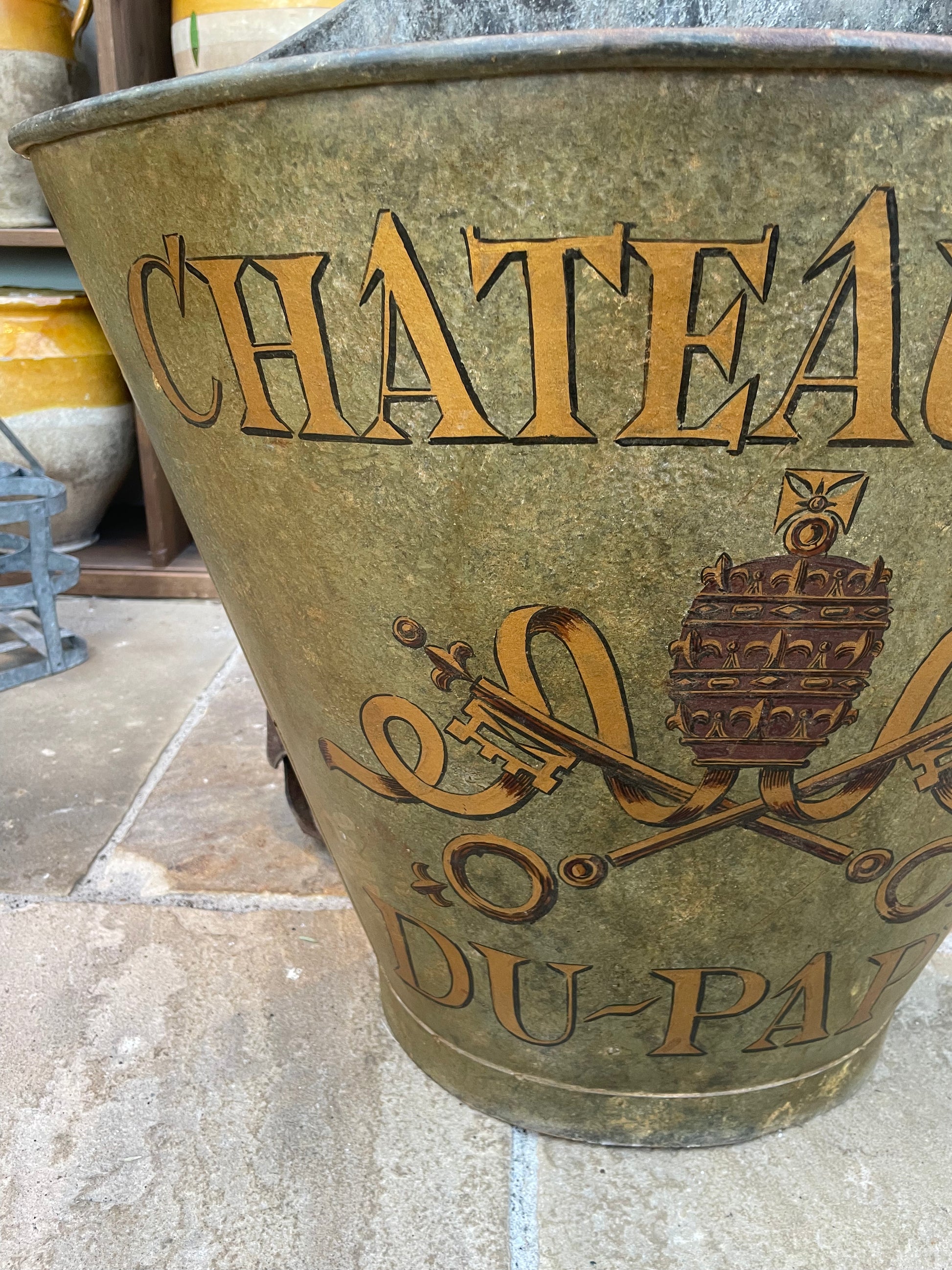 Flot gammel fransk druekurv i metal.