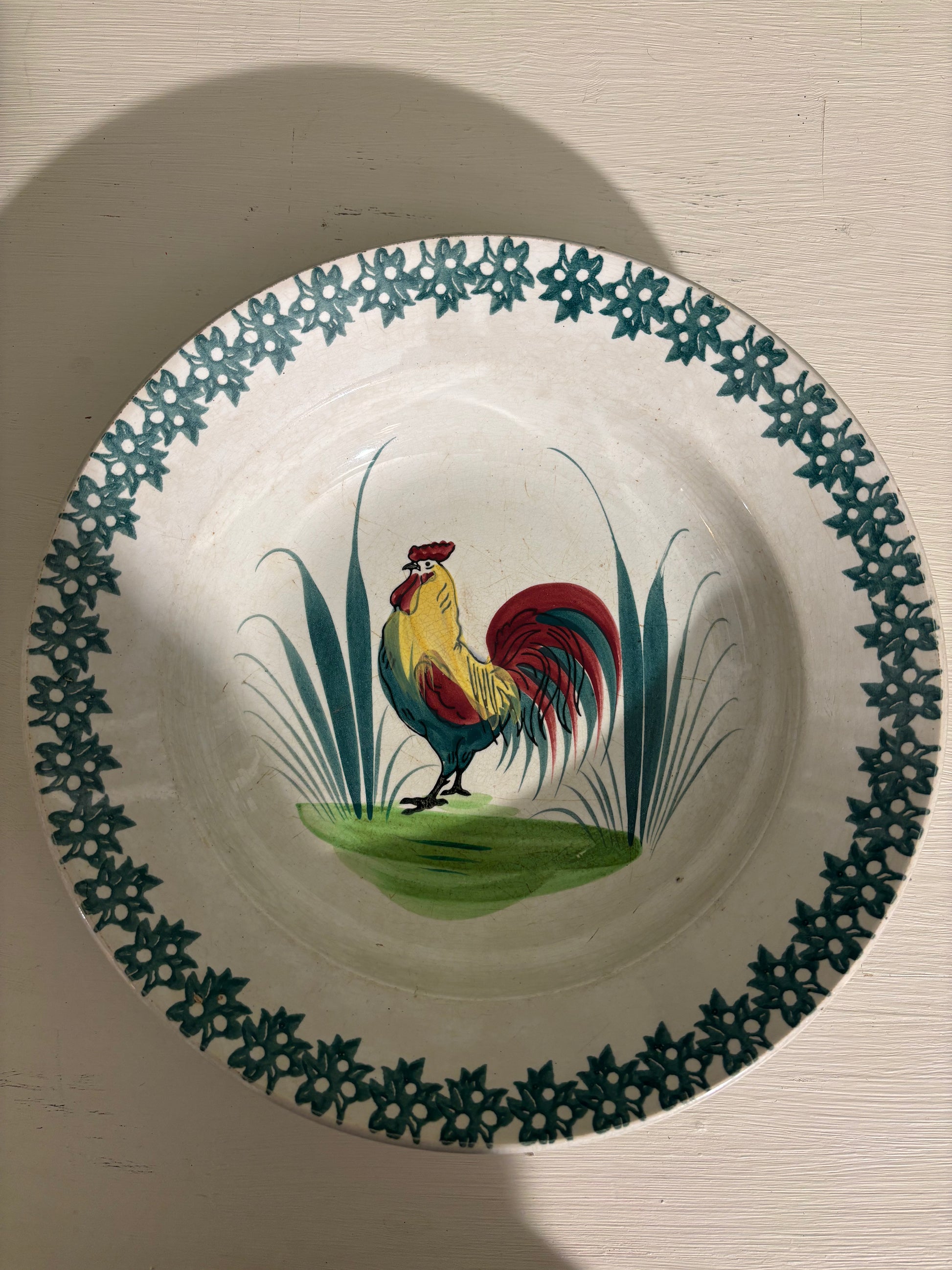 Flot gammel fransk tallerken/fad med hane.