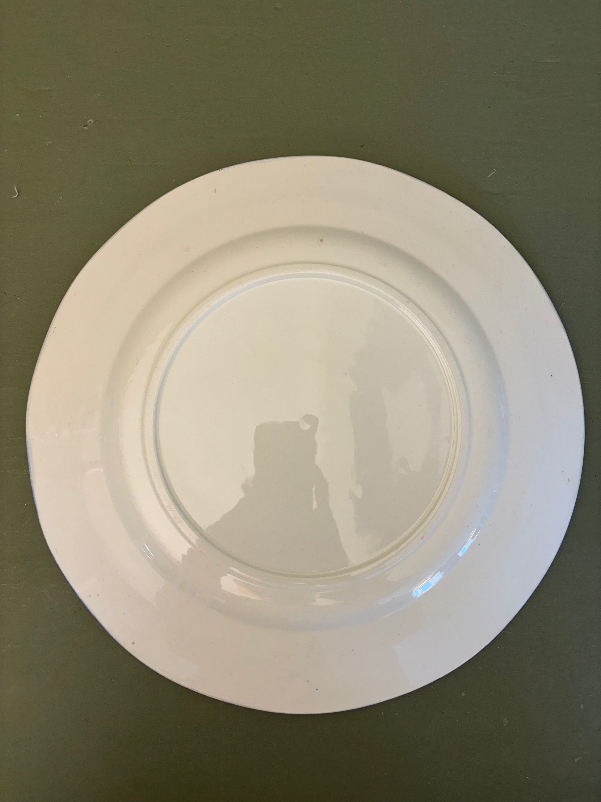 Fint fransk porcelænsfad med blåt mønster i kanten.