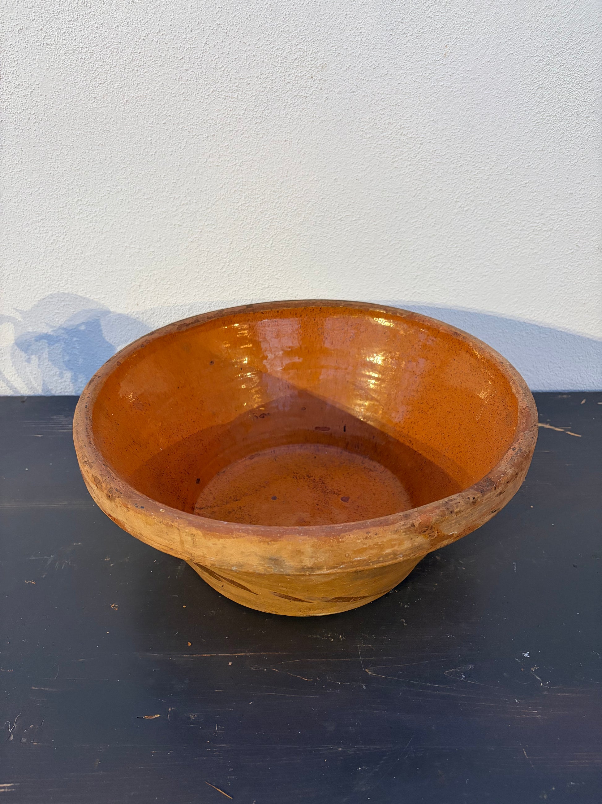 Vakkert fransk fat med oransje/brun glasur.