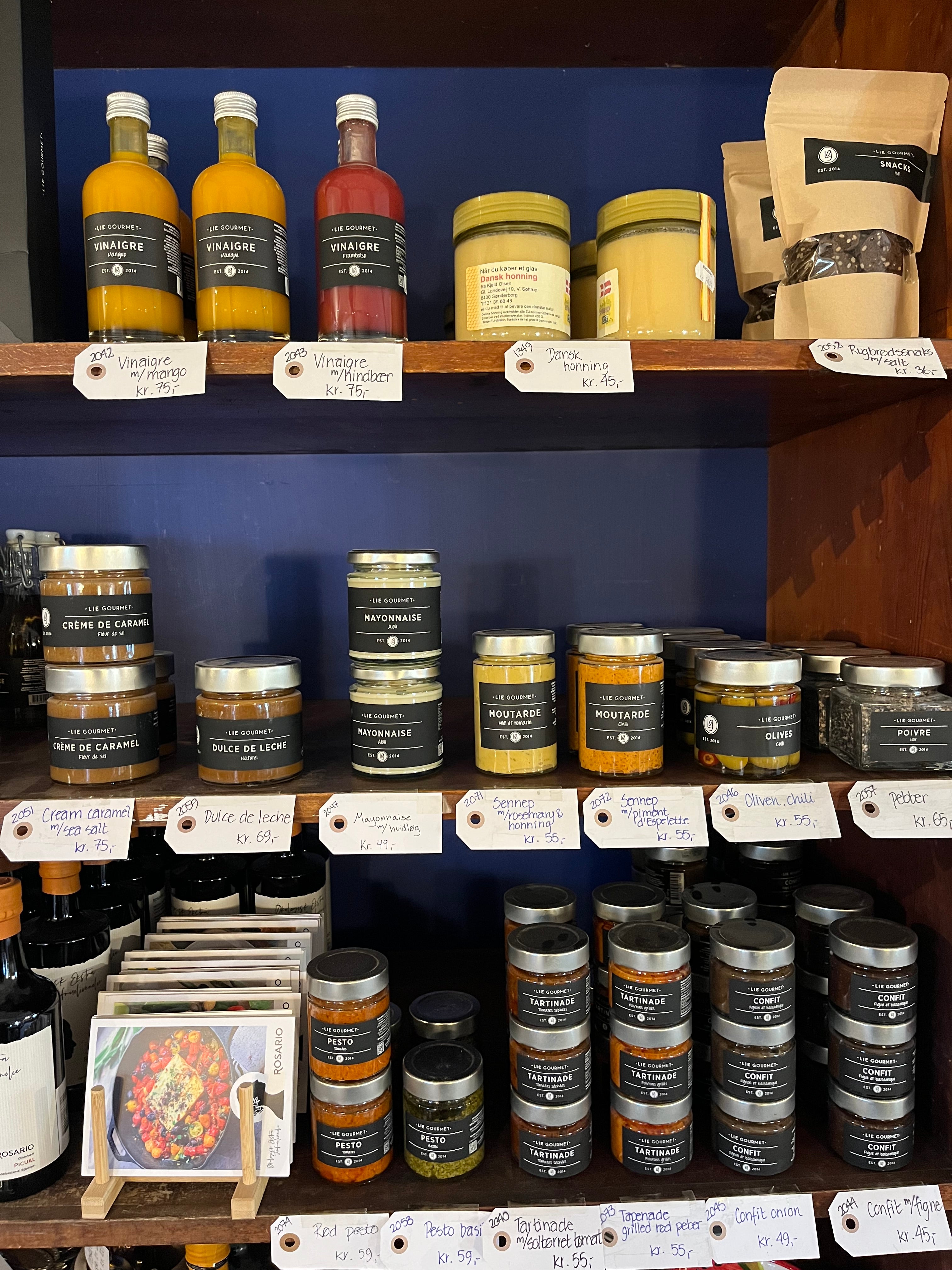 På hylderne har vi delikatesser fra det franske landkøkken af mærket Lie Gourmet. Det danske mærke deler vores kærlighed til Frankrig og har lokale producenter i blandt andet regionen Provence.