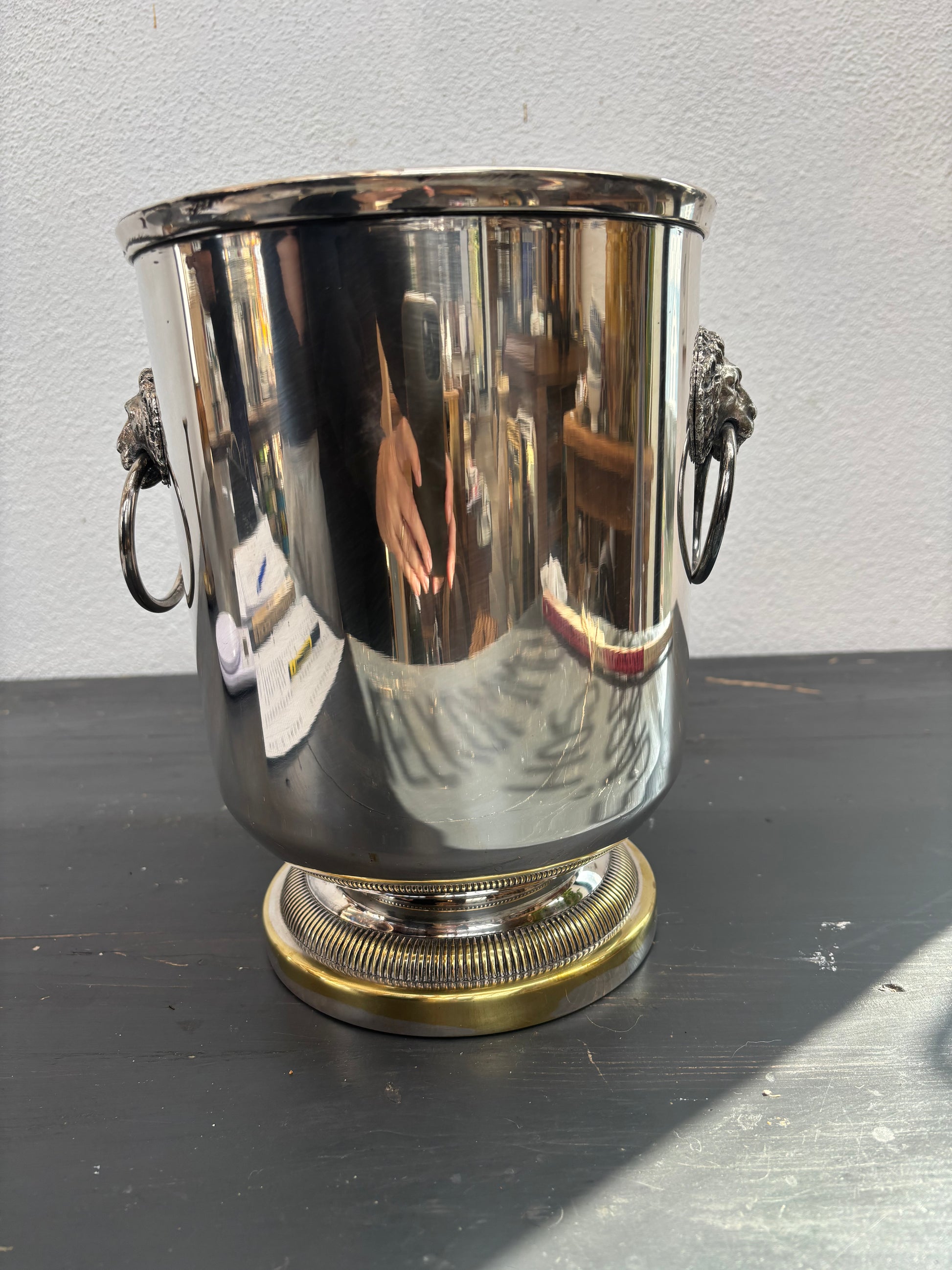 Champagnekøler med løvehoveder på siden