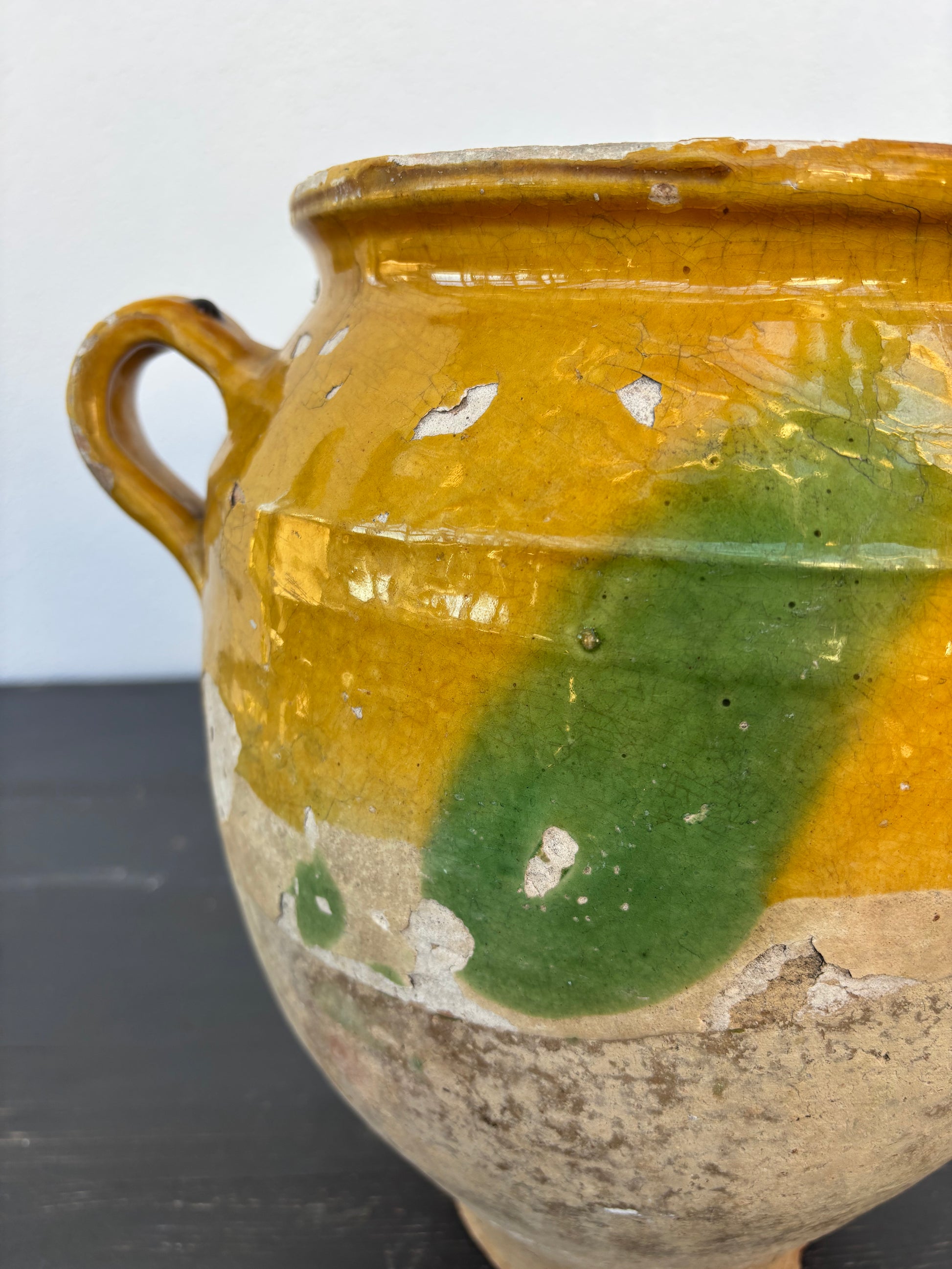 Skøn fransk confitkrukke med gul glasur og et grønt strejf.