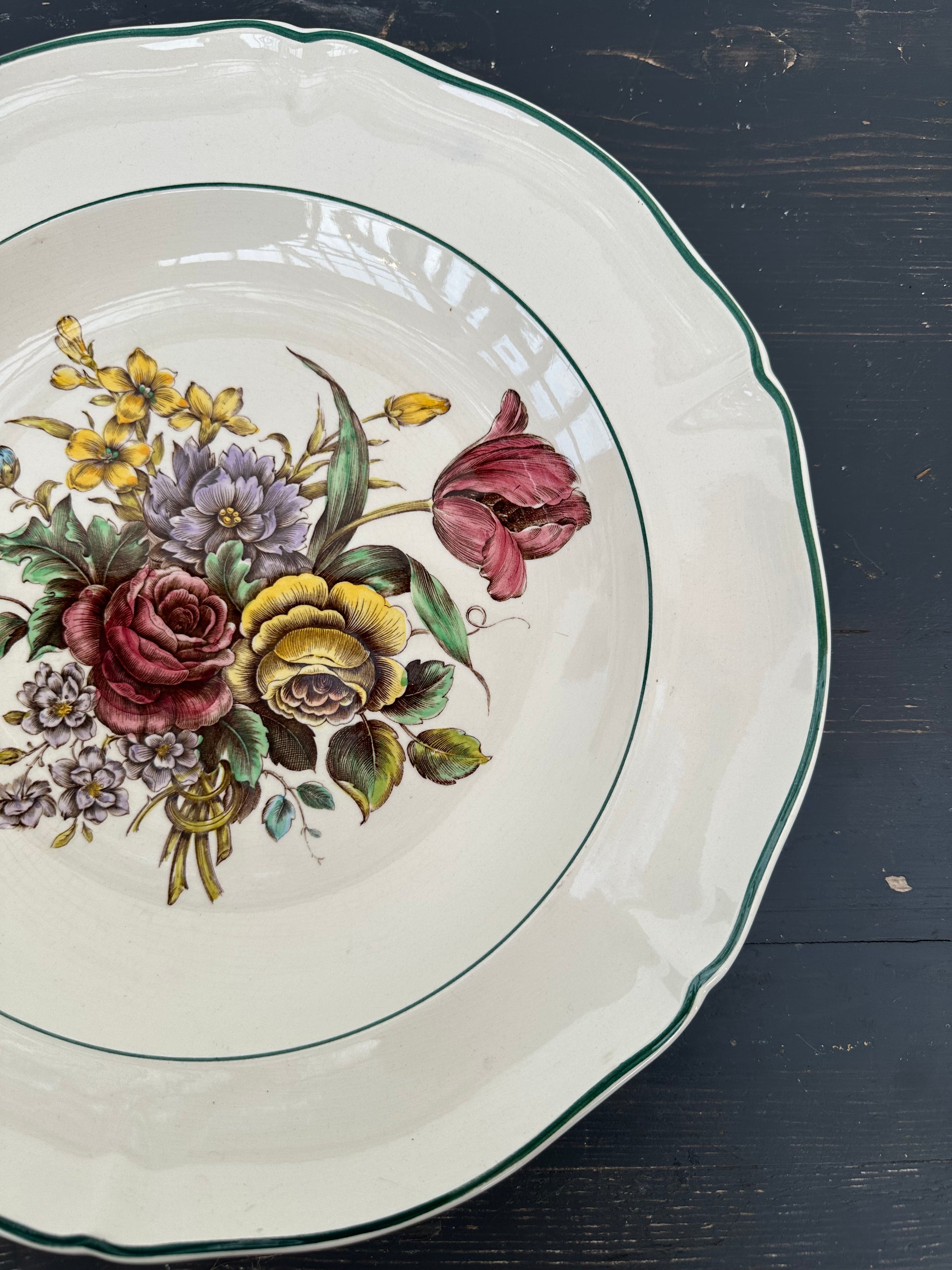 Flot fransk fad med blomster mønster.
