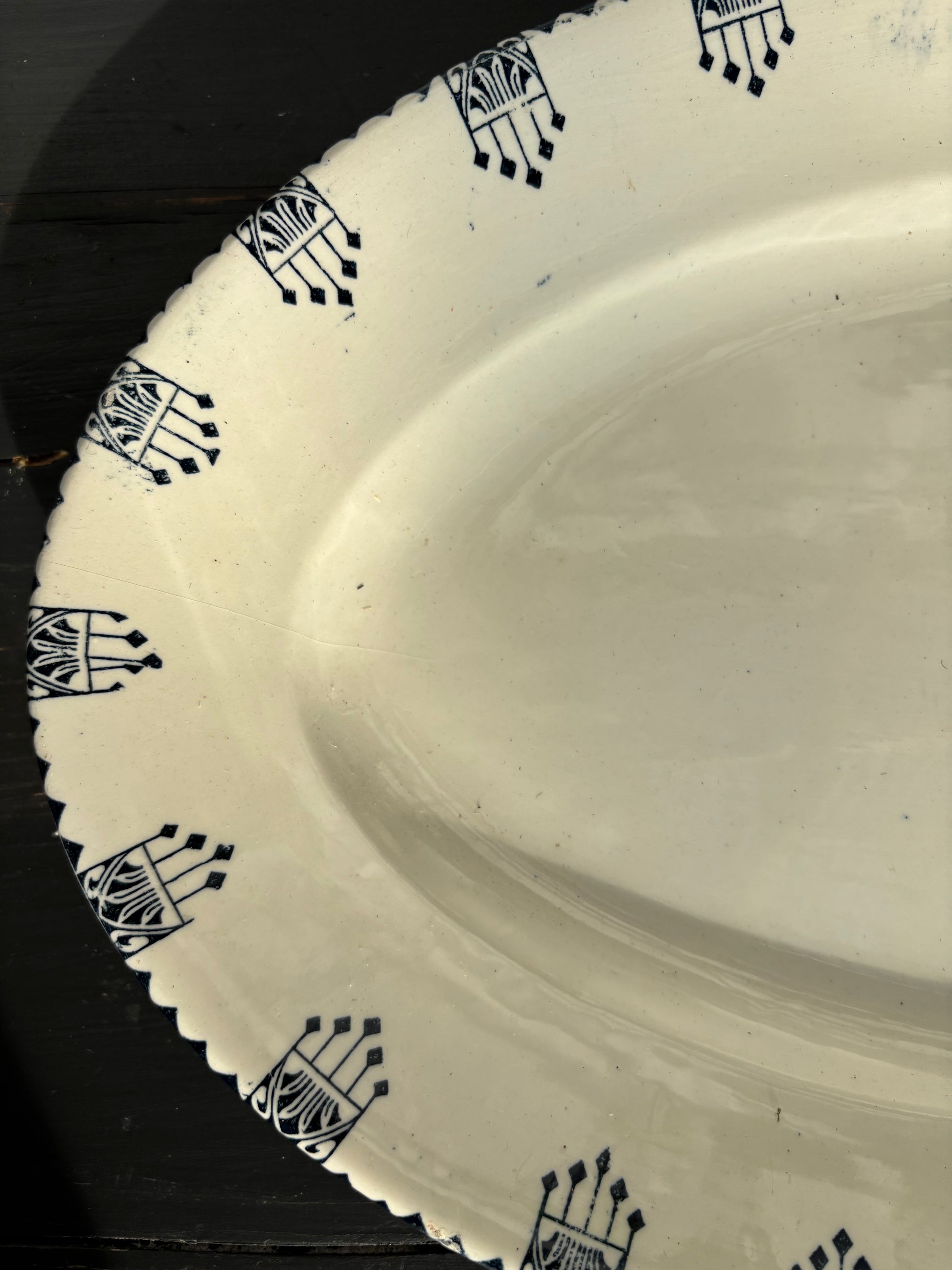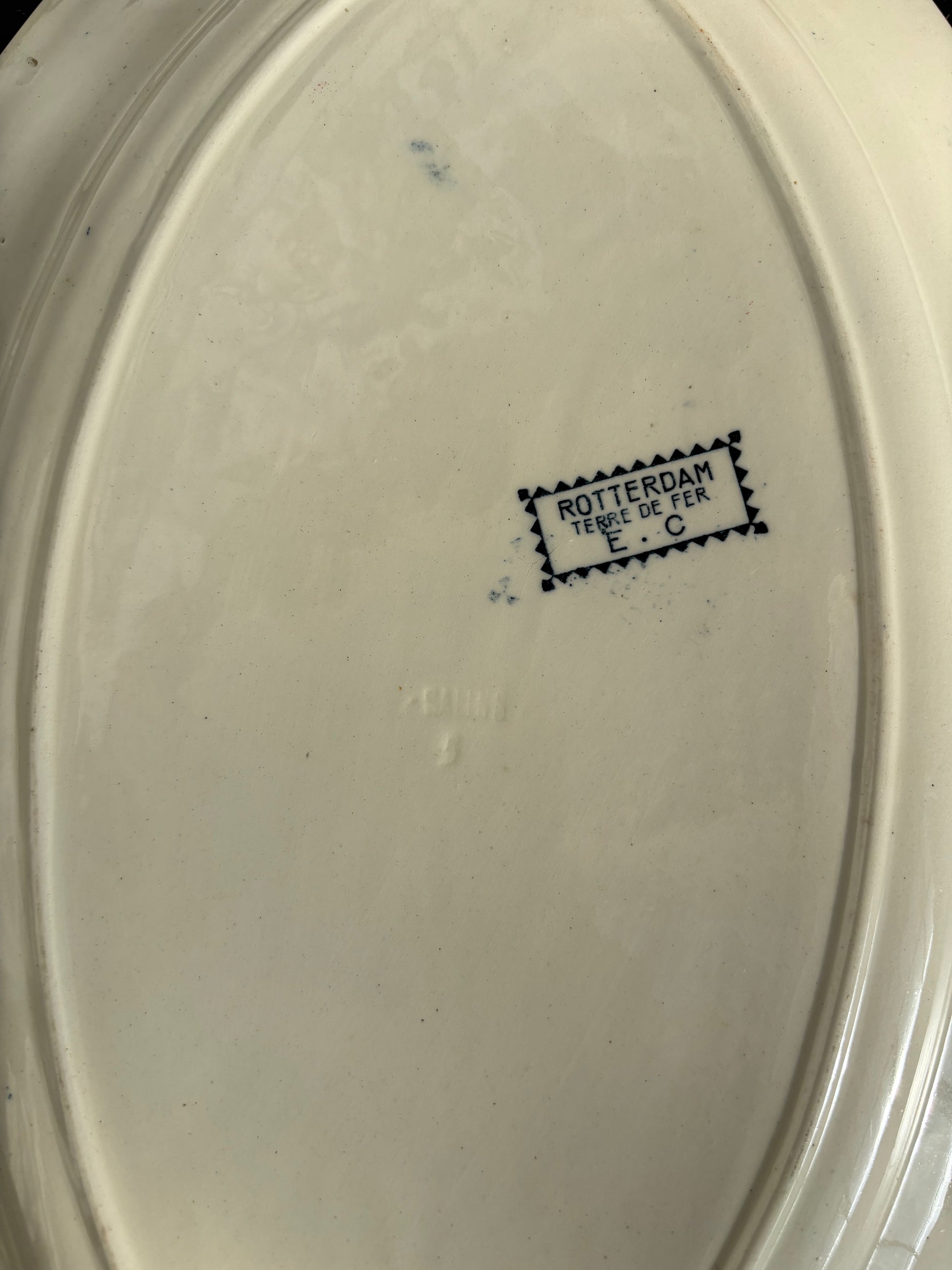 Fransk ovalt fad med blå mønster