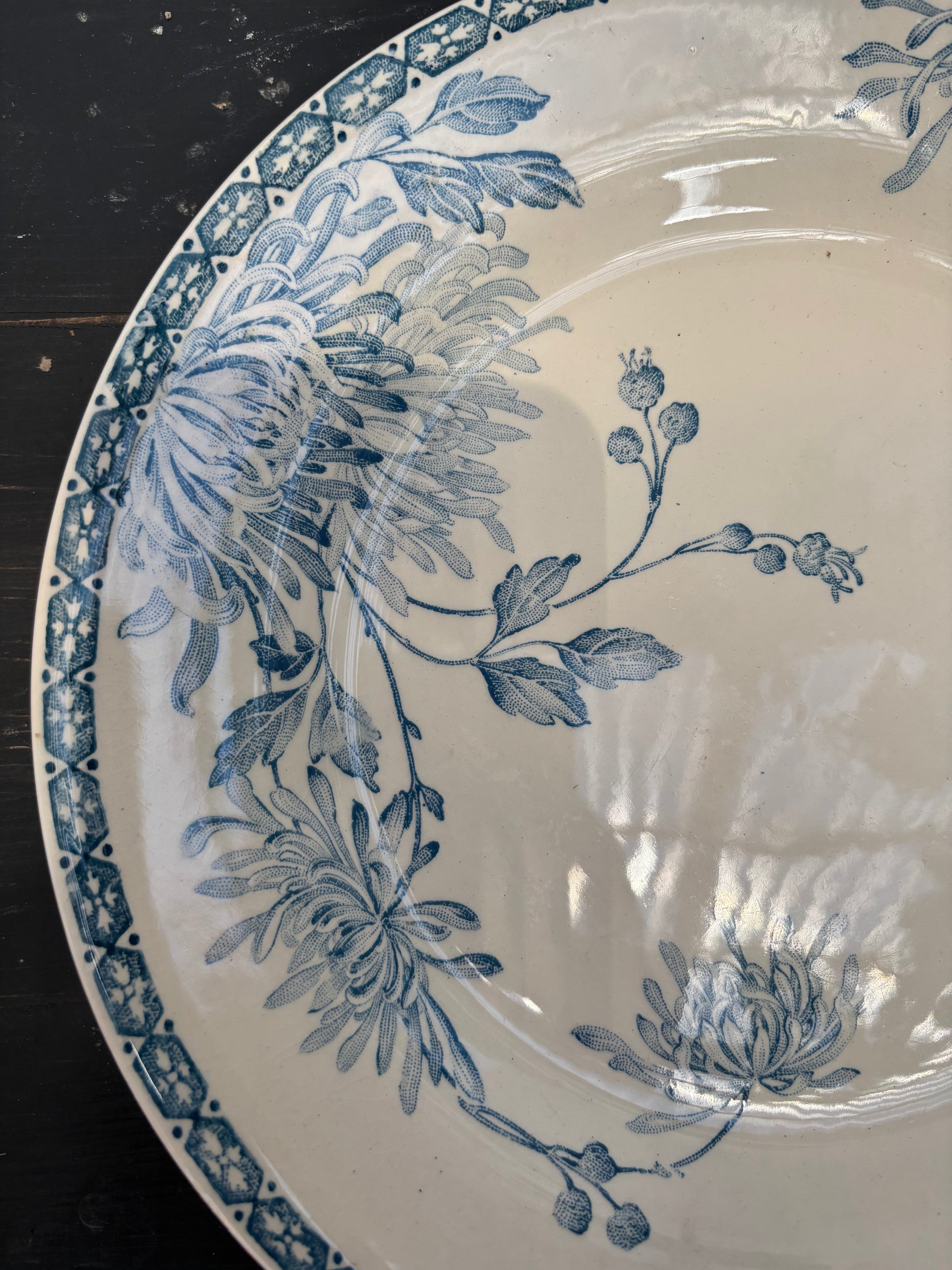 Fin fransk tallerken med lys blå mønster