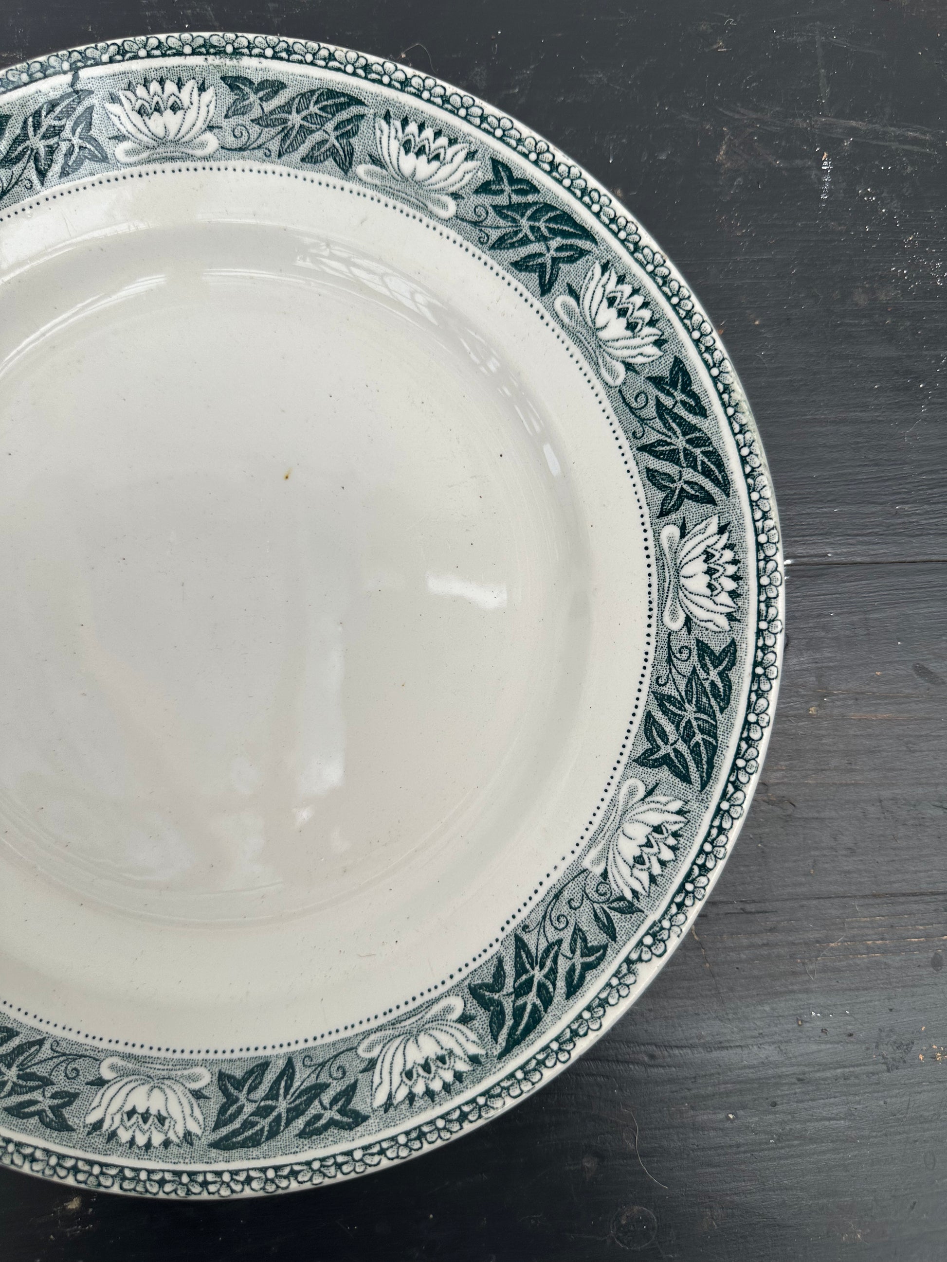 Flotte franske tallerkener med grønt mønster.