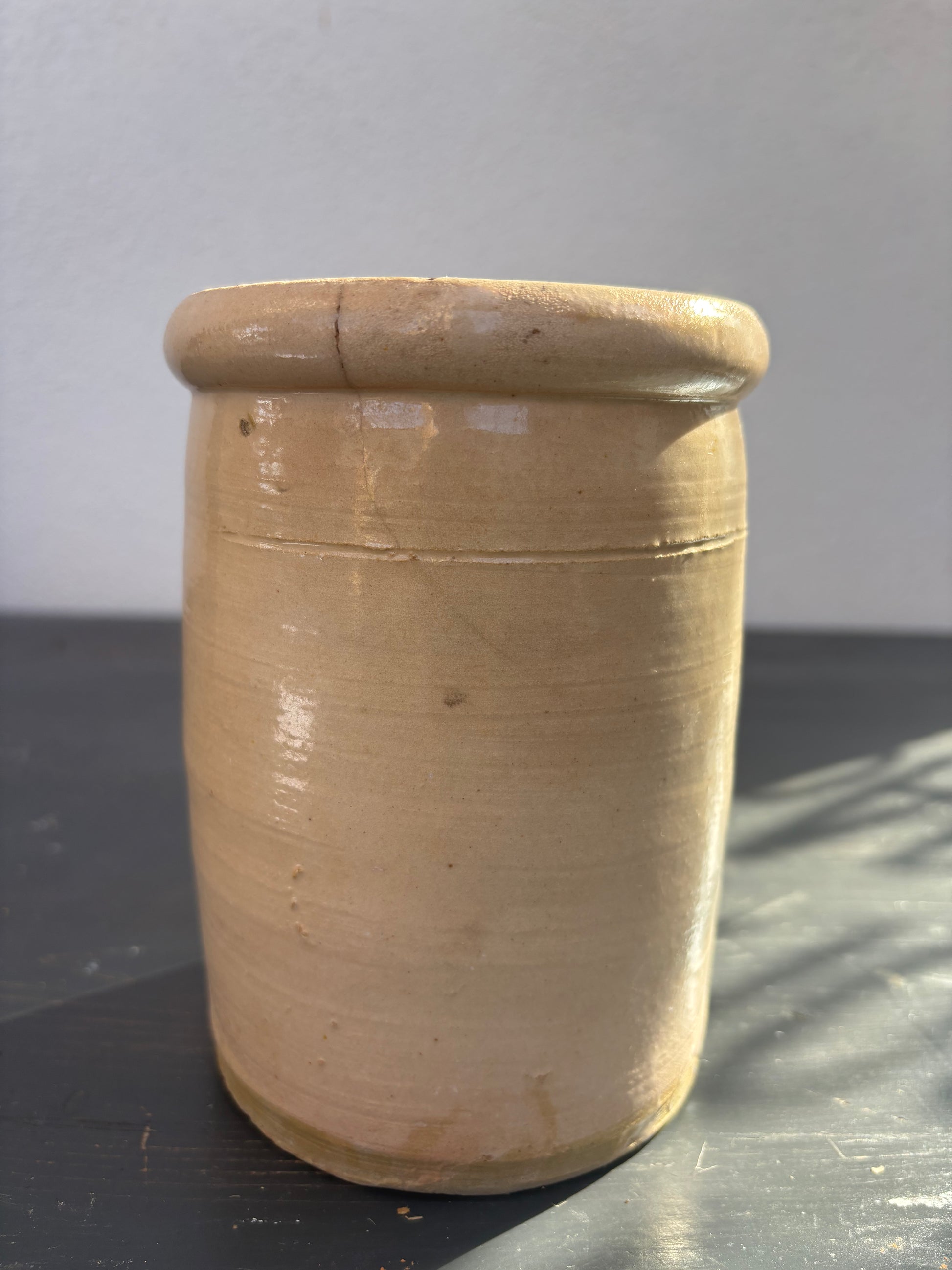 Italiensk krukke med cremefarvet glasur