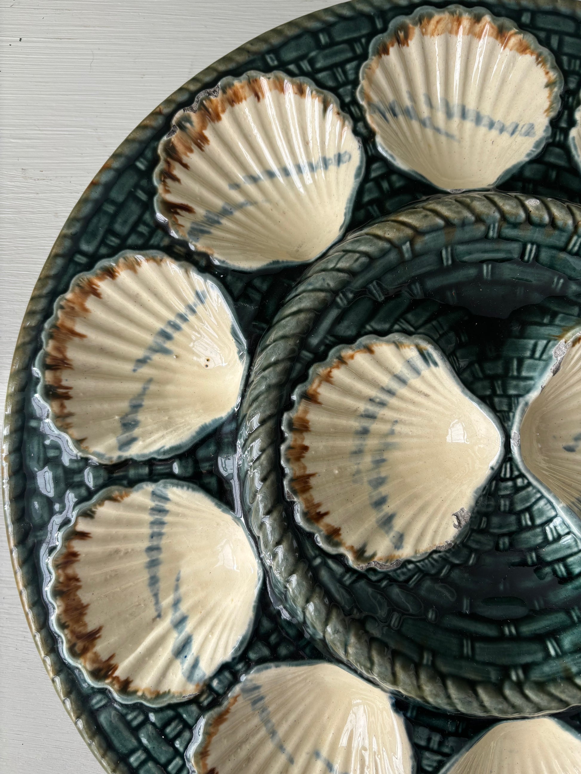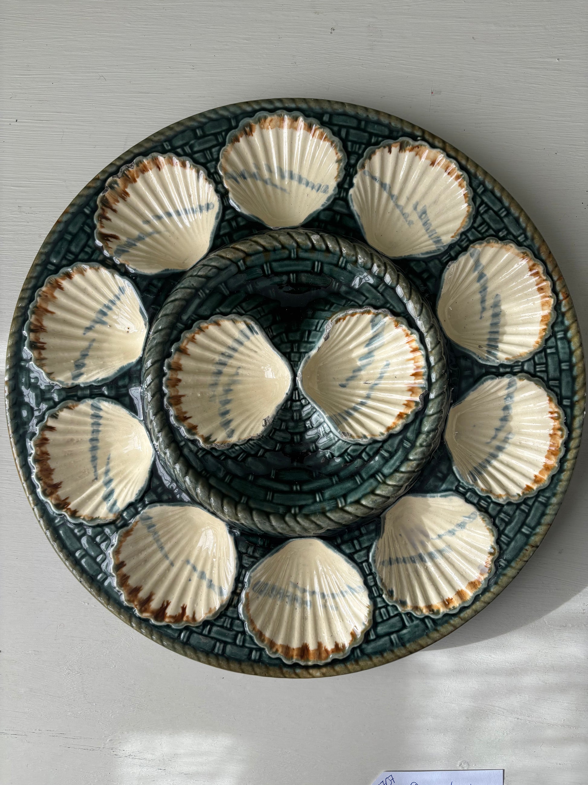 Meget flot Østersfad i creme og grønlige nuancer