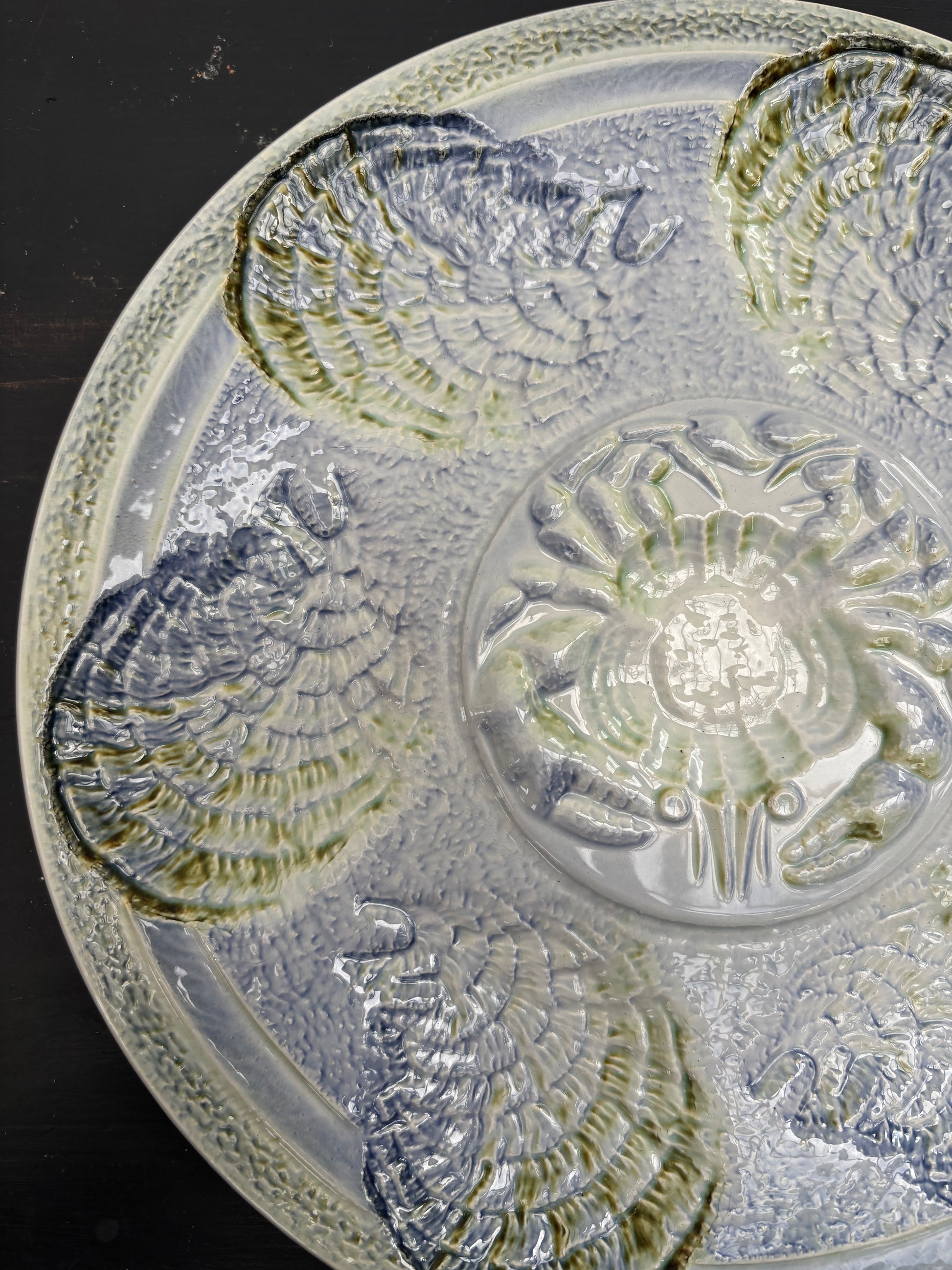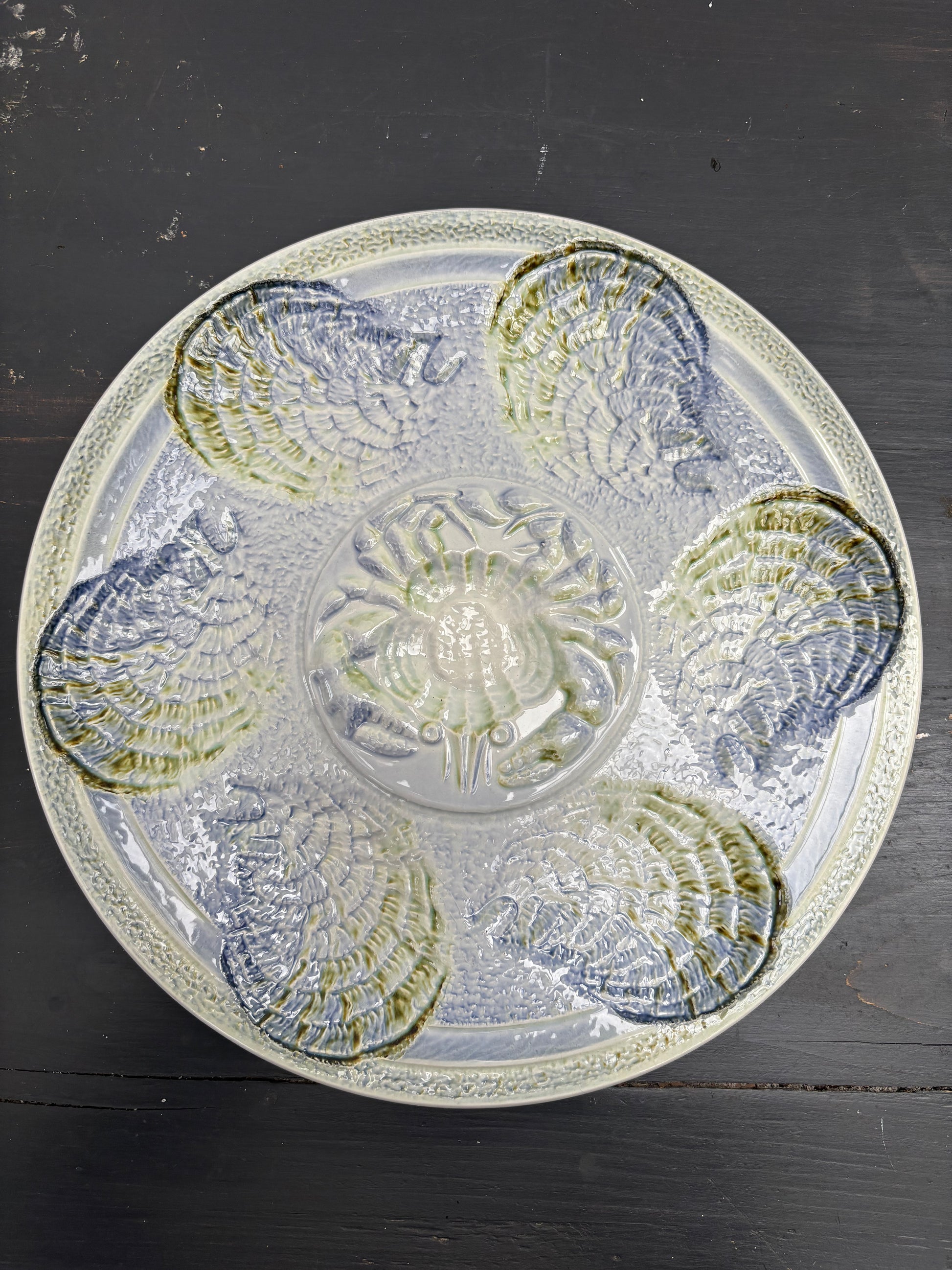 Flot fransk Østerstallerken i blå og grønne nuancerer